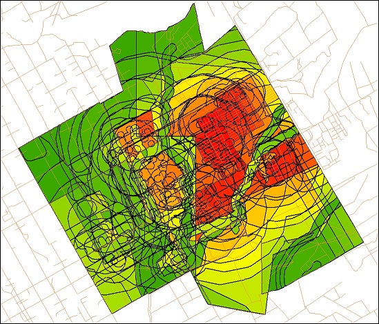 c. Evaluación espacial de la Movilidad Urbana (MU) y Conectividad de las Vías (CV) en subsectores urbanos, en relación a otras variables urbanas.